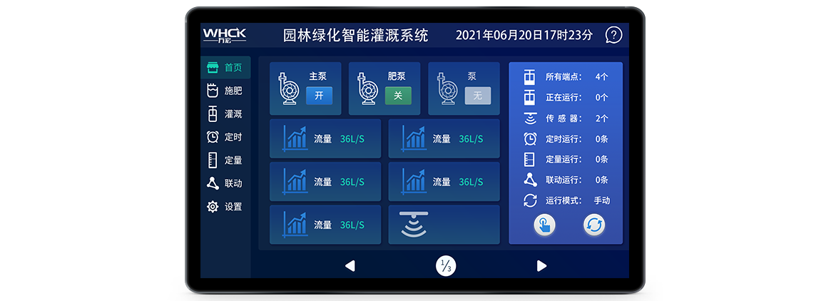 用户足不出户就可以实现远程控制灌区设备。可以自定义灌溉方案和计划,一键切换自动控制,系统将会按照方案配比自动灌溉。提供PC和手机客户端功能,客户可以通过电脑或手机在任意地点就可以对灌区的所有设备远程控制。